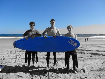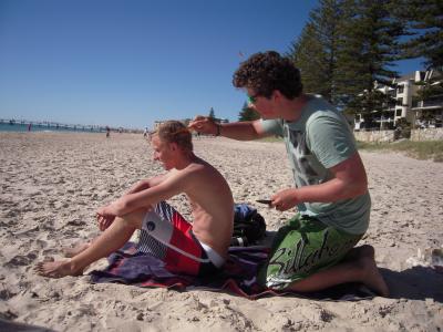 Waren gestern surfen und den typisch australischen Lifestyle genießen. War einfach nur richtig geil! Hab zwar höchstens einige Sekunden aufm Board gestanden und mehr Zeit mit dem Versuch verbracht den Pazifik auszutrinken; doch trotzdem hat es einfach nur richtig viel Spaß gemacht!